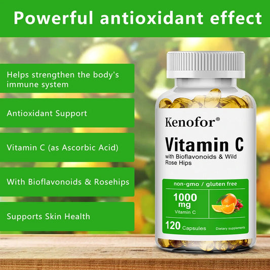 Vitamin C 1000mg - with Bioflavonoids & Wild Rose Hips,Supports Skin Health,Antioxidant,Immune System Health,120 Capsules
