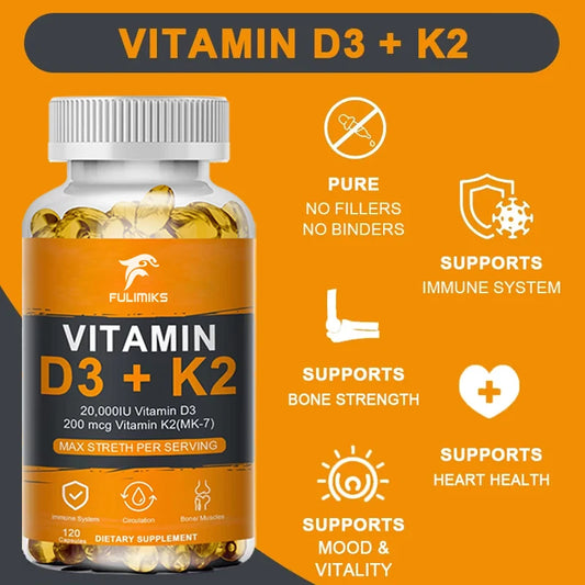Vitamin D3 K2 Capsule - 20,000 IU Vitamin D3 Promotes Strong Bones, Calcium Absorption, Teeth, Heart, Cardiovascular Health